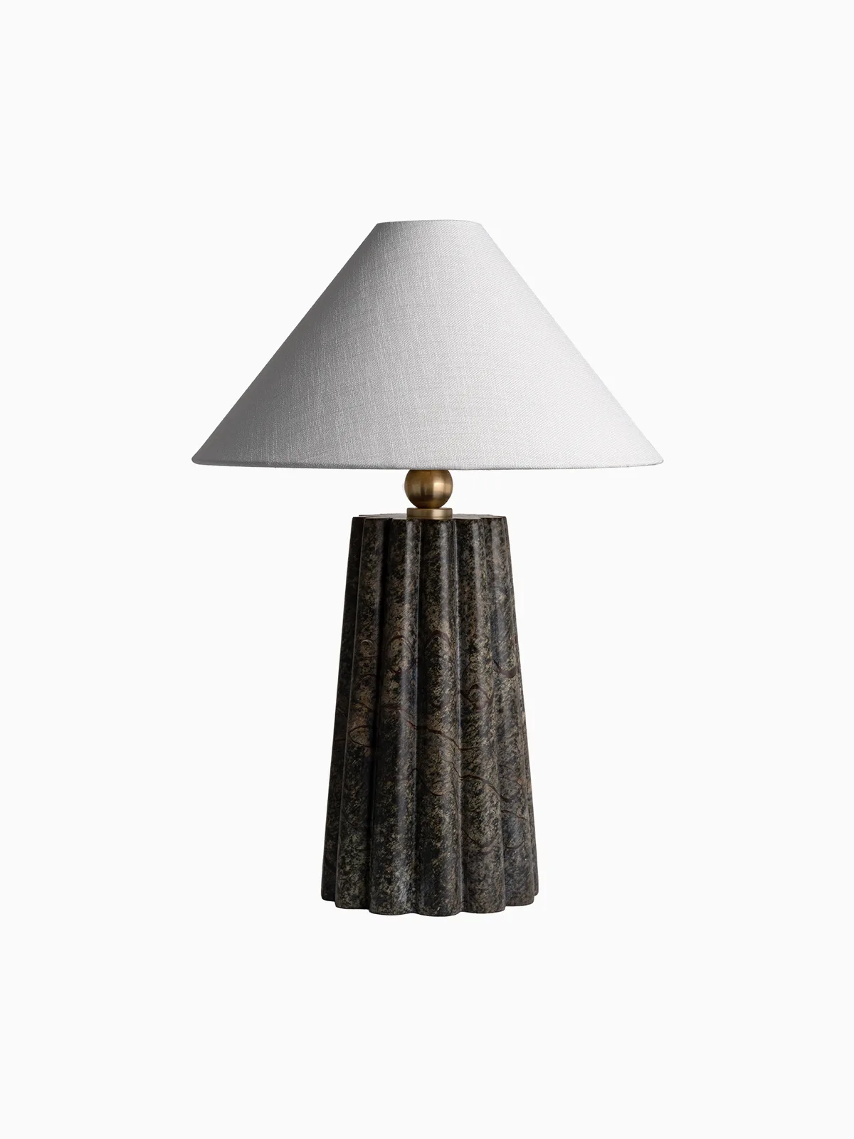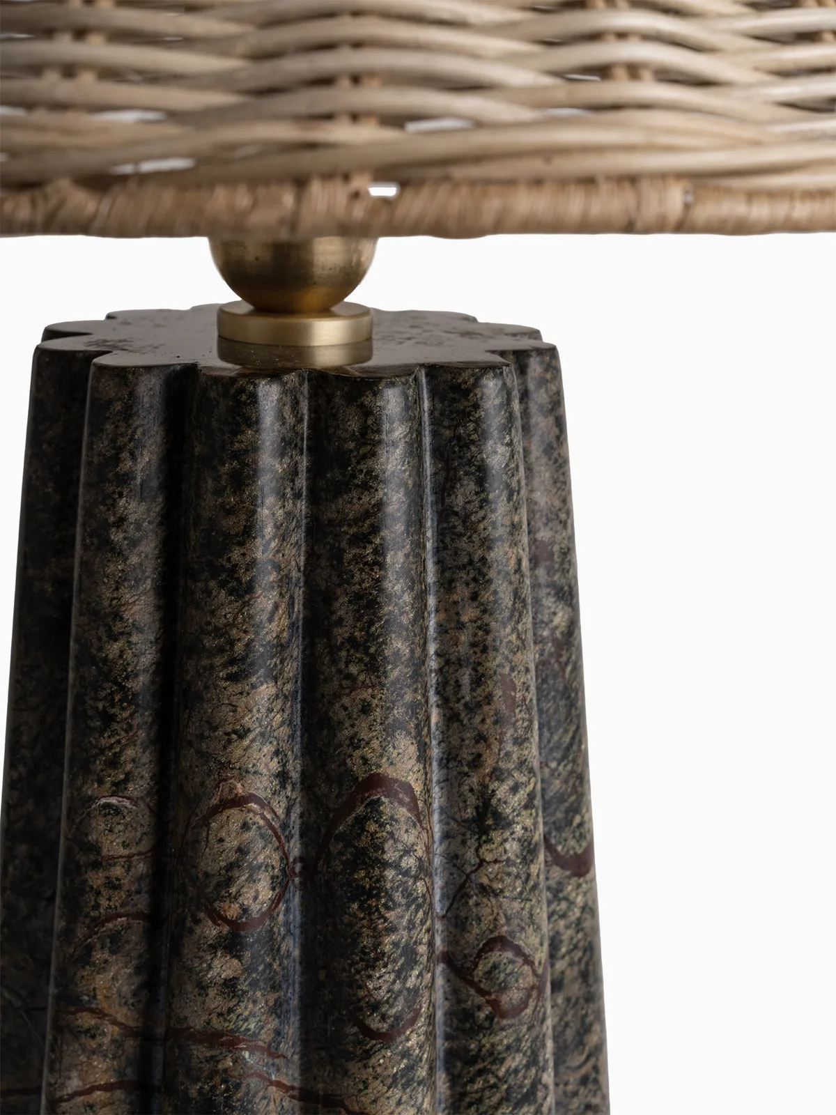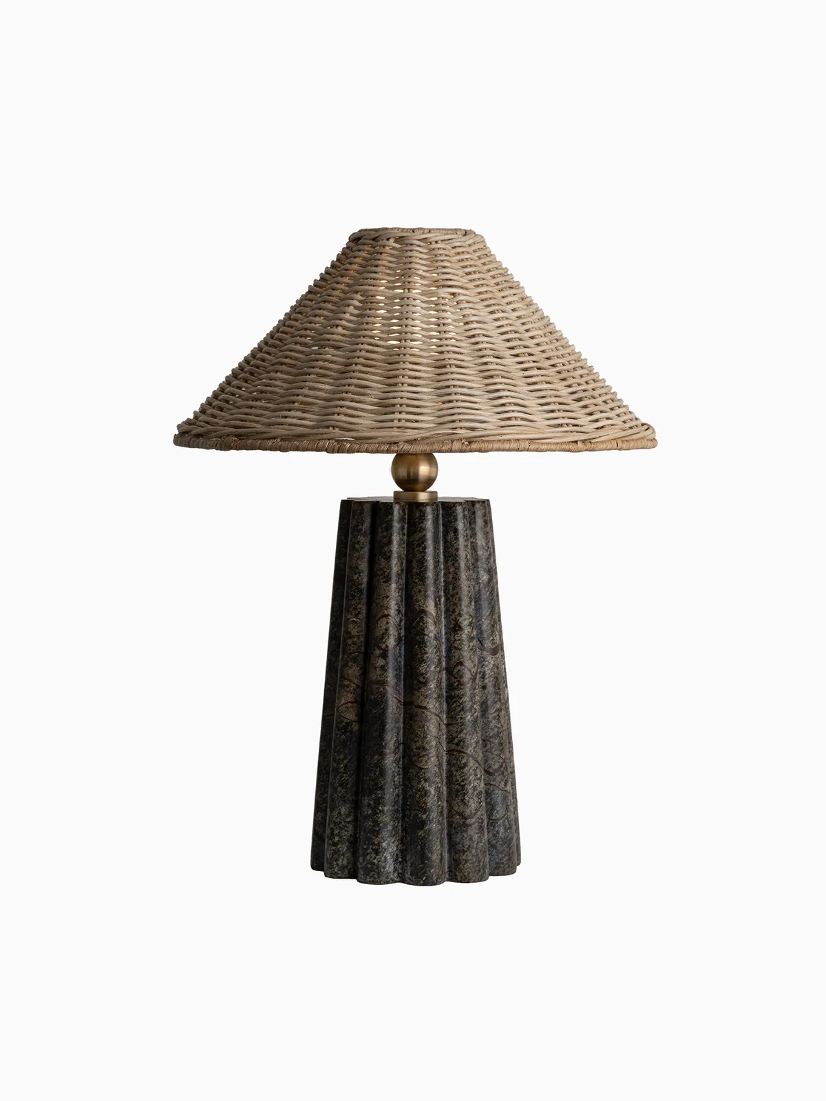 - La lampe De Table est Doté d’un abat-jour en Satin ou D'un Abat jour en rotin tissé à la main fabriqué aux Philippines et d’une base en marbre vert cannelé, Sonny ajoutera une touche naturelle et organique à n’importe quelle pièce. Un manche sphérique en laiton massif est la touche finale ; L’un des détails bien pensés qui garantissent que nos lampes sont aussi belles éteintes qu’elles le sont lorsqu’elles sont allumées.